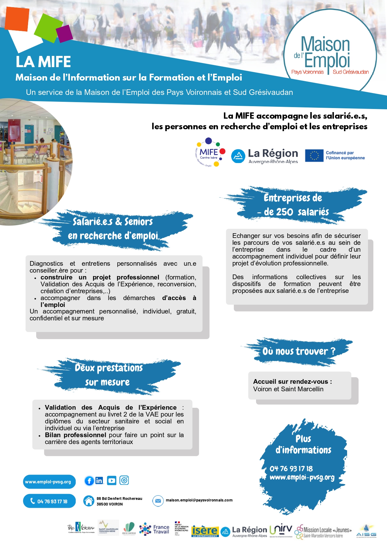 Vous êtes salarié.e et vous souhaitez évoluer professionnellement, utiliser votre CPF, vous reconvertir, changer d’orientation professionnelle, obtenir un diplôme via la Validation des Acquis de l’Expérience ? Pour répondre à toutes vos interrogations, la Maison de l’Emploi vous propose deux réunions d’information (en présentiel et en visio) les : jeudi 12 mai 2022 à 18:00 sur …